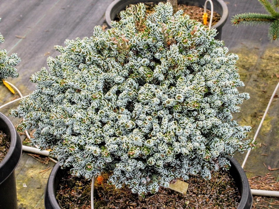 Opinia pepinierei: Abies koreana "Ice Breaker" a devenit o senzație peste noapte după descoperirea sa ca o mutație care crește pe A. koreana "Horstmann's Silberlocke" și este căutată pentru apariția sa uimitoare în grădină! Acele cu două tonuri se recurbează în sus și în jurul tulpinilor lor pentru a expune o parte inferioară albă strălucitoare, cerată a acelor verzi. Creșterea lentă, cu o formă rotunjită atunci când este tânără, se poate maturiza în cele din urmă într-un copac mic piramidal. Acest pitic spectaculos și colorat a câștigat distincția Societății Americane de Conifere ca și Specia de conifere a anului 2014. Cumpărați un exemplar de Brad corean 'Kohout's Ice Breaker' astăzi de la pepinieră!